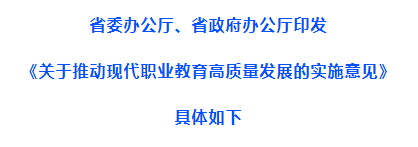 云南省关于推动现代职业教育高质量发展的实施意见为贯彻落实中共中央办公厅、国务院办公厅印发的《关于推动现代职业教育高质量发展的意见》精神以及全国、全省职业教育大会精神,推动我省现代职业教育高质量发展,加快建设职业教育强省,服务云南经济社会发展,近日,省委办公厅、省政府办公...